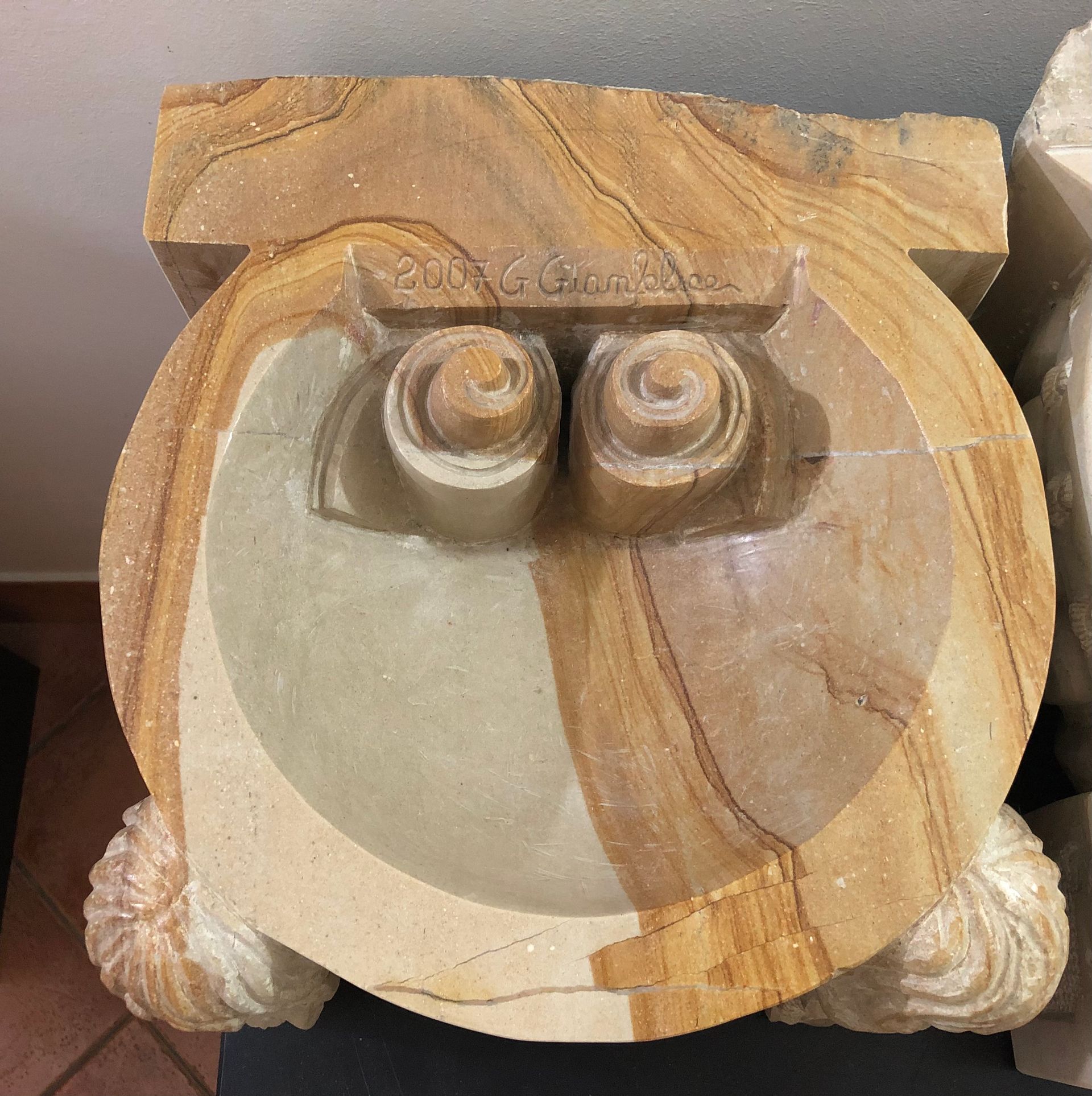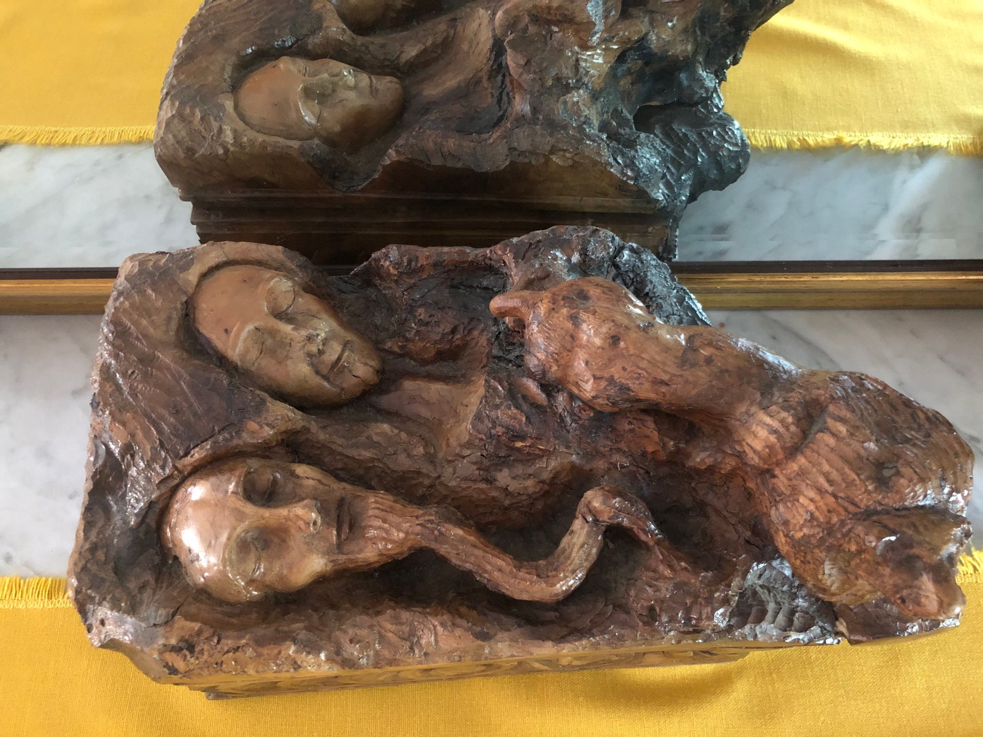 Successivamente, avendo scoperto che in Molise è presente una pietra detta “Noce” per le sue calde venature, inizia un periodo di sperimentazione scultorea su questo materiale autoctono, realizzando figure astratte, femminili, religiose, bassorilievi per fontane ed acquasantiere. L’ispirazione per le sue opere arriva dal periodo ellenico e romano.